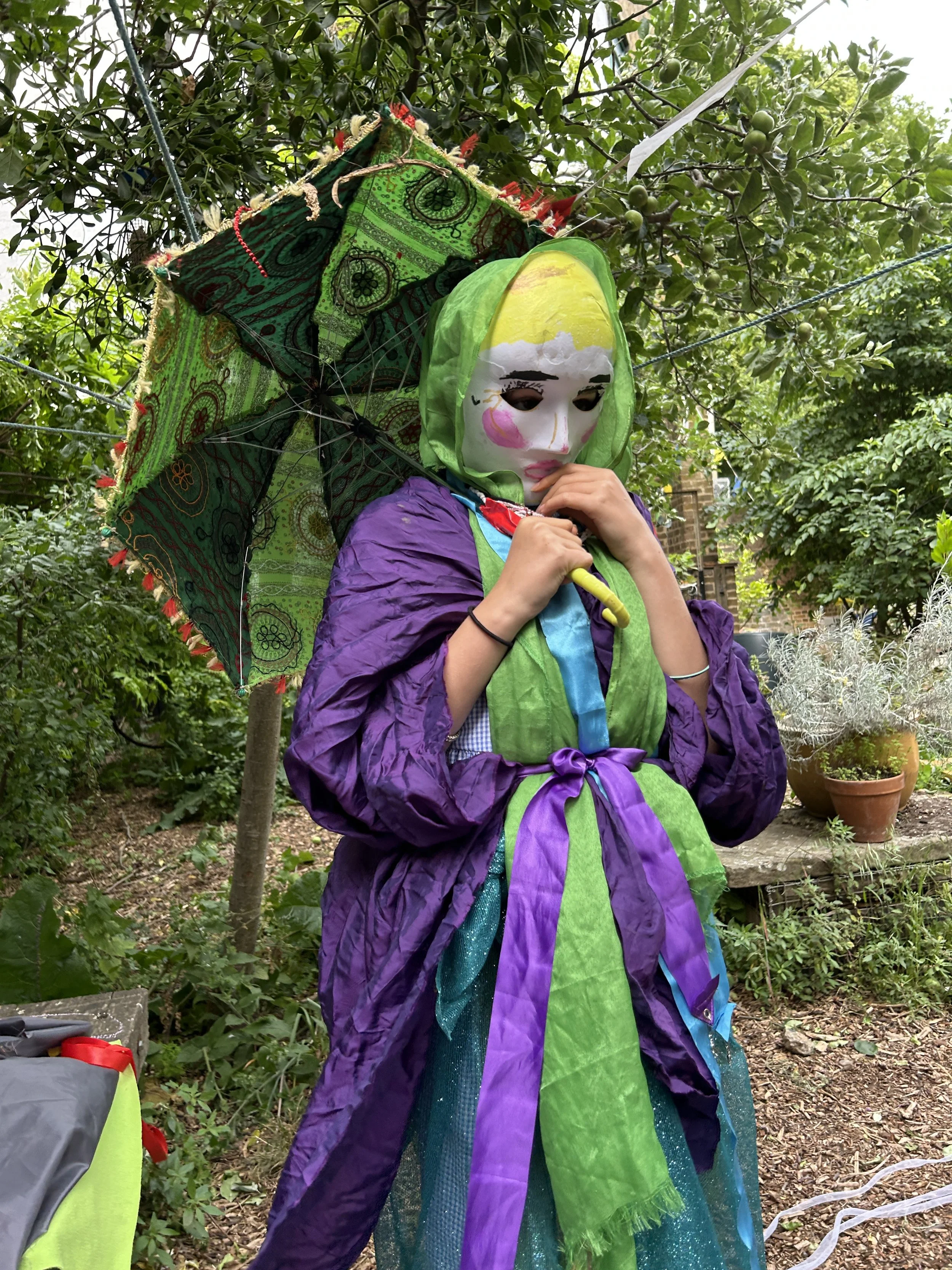 Outdoor, child-directed play in a beautiful community garden in the heart of the city - with loose parts, woodwork, open-ended art & crafts, den making, gardening, messy play and storytelling with Emma's Earth Tales.