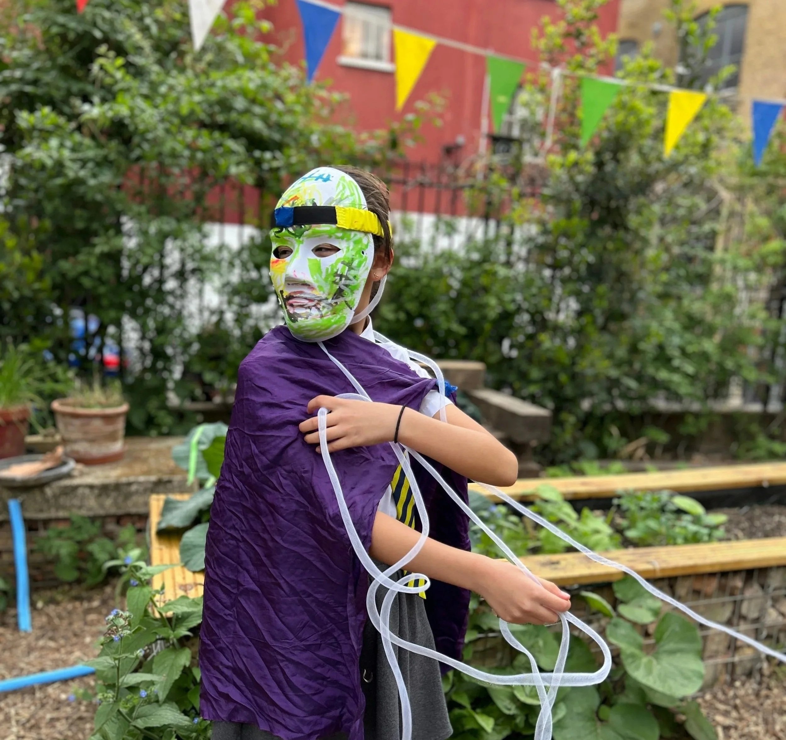 Outdoor, child-directed play in a beautiful community garden in the heart of the city - with loose parts, woodwork, open-ended art & crafts, den making, gardening, messy play and storytelling with Emma's Earth Tales.